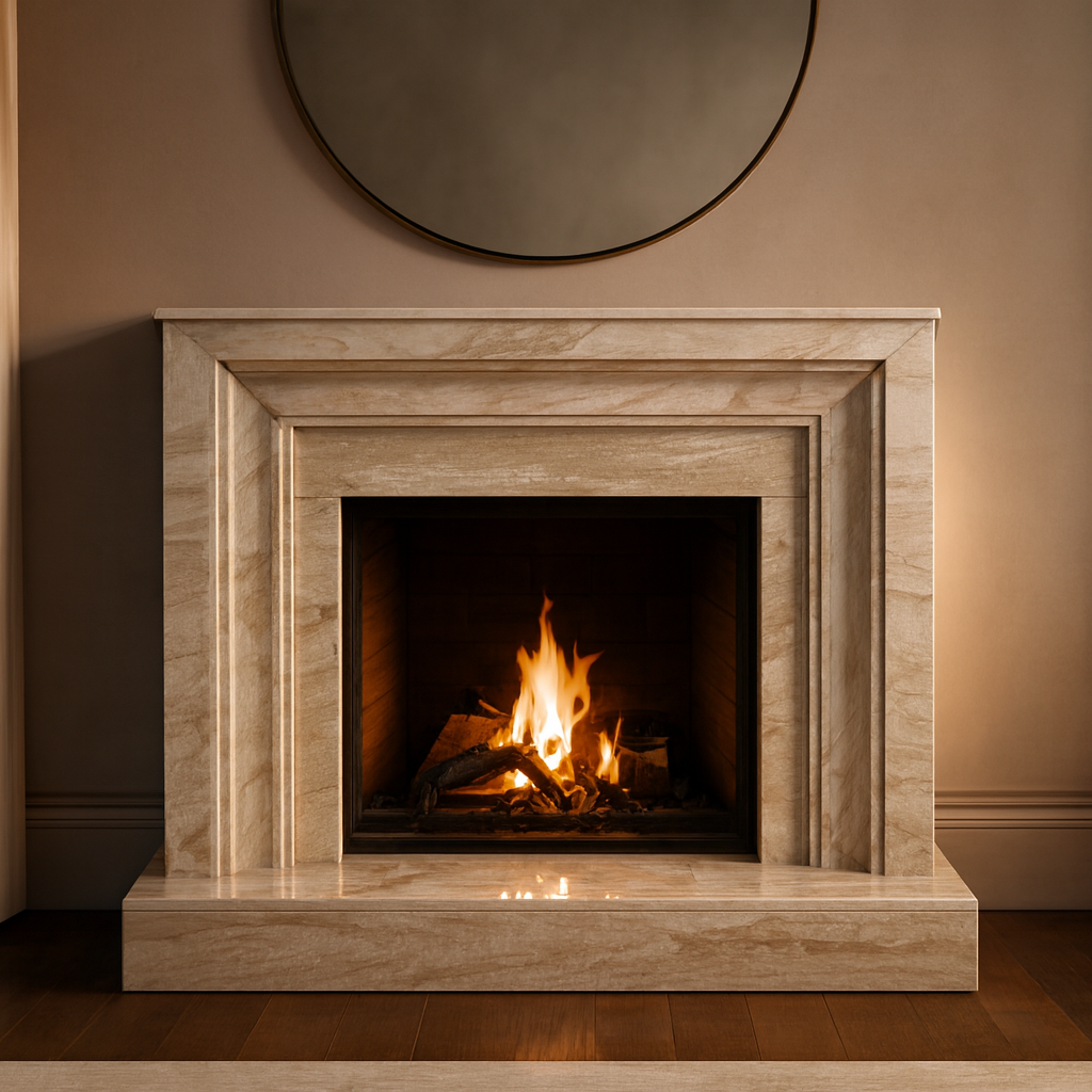 The Sardinia marble fireplace by Ishaq Marble combines timeless elegance with modern luxury. Crafted from premium Sardinia marble, it showcases graceful white and gray veining and a polished surface that reflects light beautifully. A perfect centerpiece, it brings warmth, style, and refined craftsmanship to any living space.